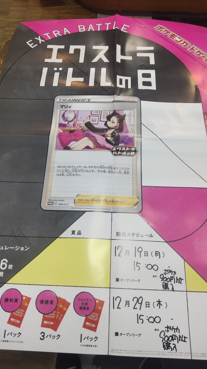 おもちゃの平野でもポケモンカードのエクストラバトルの日やります!12月19日と12月29日、15時~、ポケカ商品900円以上購入が必... [おもちゃの平野【Twitter】]