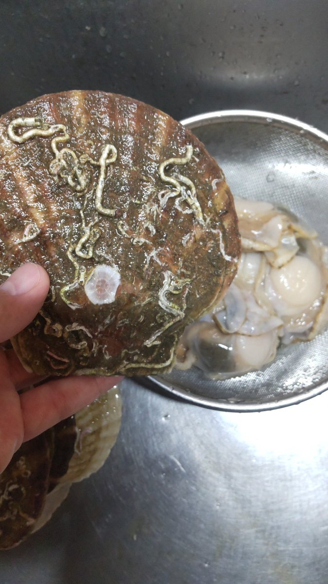閉まるホタテをスパッと開けてやった!生でいただきます!旨そうだ! [おもちゃの平野【Twitter】]