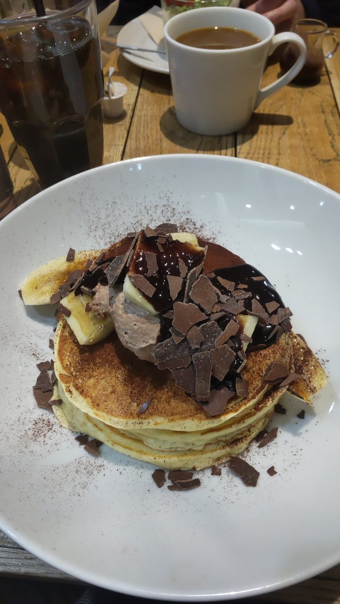 疲れたので、ちょっとお茶しようと思ったのに、チョコレートパンケーキまで頼んでしまった!(笑) [おもちゃの平野【Twitter】]