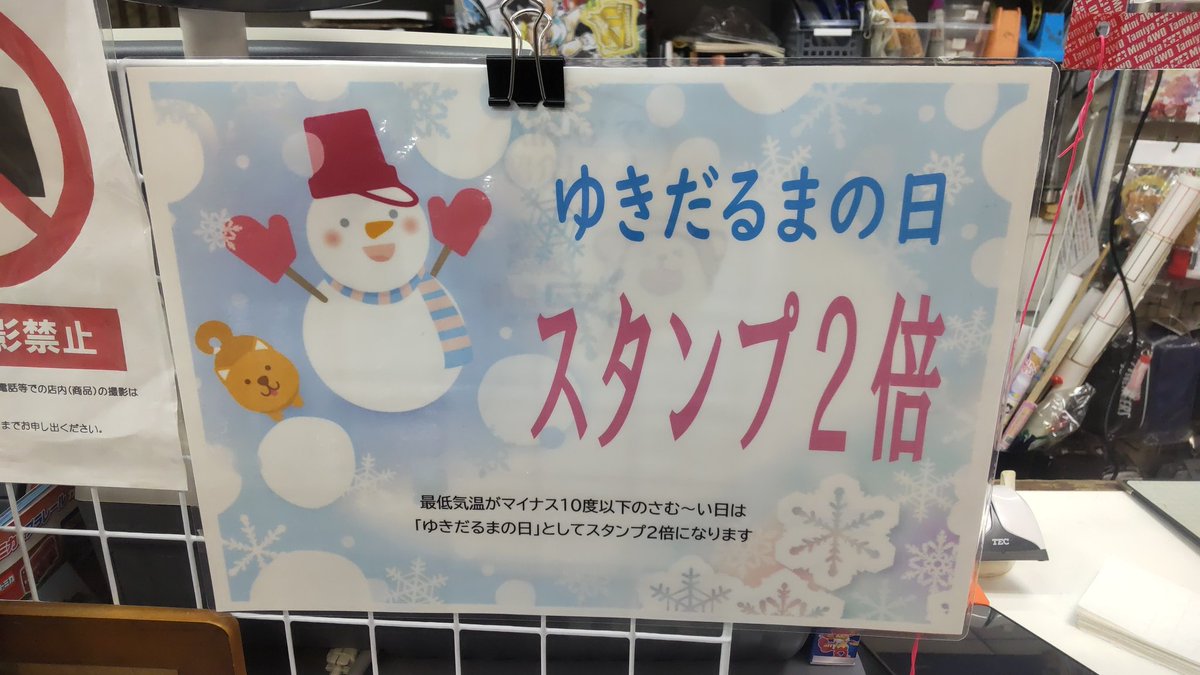 おもちゃの平野では、札幌の最低気温マイナス10度以下の寒~い日(雪だるまの日)としておもひらポイント2倍になります。よろ... [おもちゃの平野【Twitter】]
