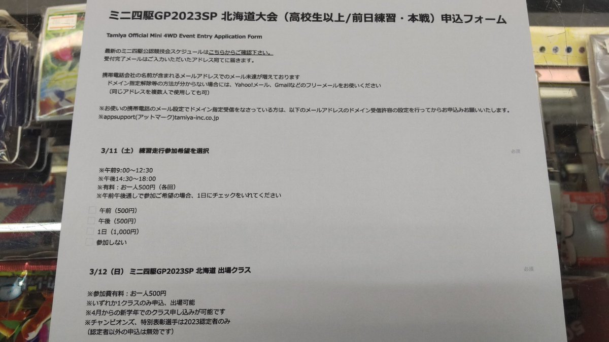 ミニ四駆GP2023SP北海道大会、Web受付始まってますね!3月12日は熱いレースを期待してます!3月11日は練習走行日も有ります... [おもちゃの平野【Twitter】] | おもちゃの平野
