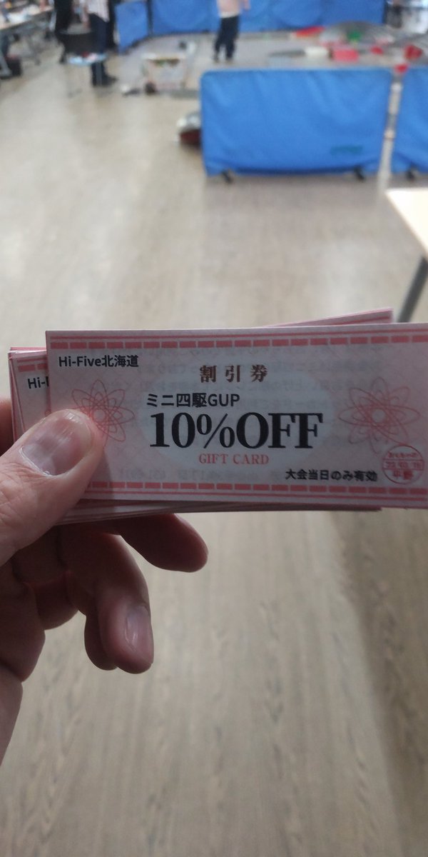 今日は西区民センターでハイファイブのミニ四駆大会があります。恒例のミニ四駆パーツ割引券を持ってきました。運営の方からも... [おもちゃの平野【Twitter】] | おもちゃの平野