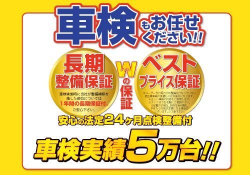 車検実施時に当社が整備補修を施した部位については1年間の長期保証付。ご安心下さい。