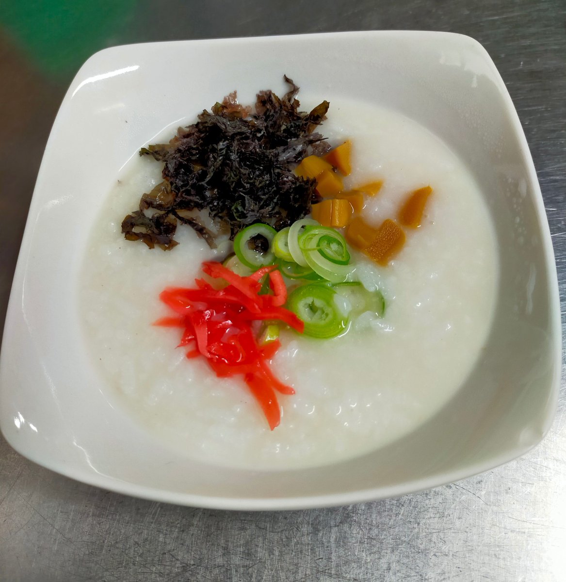 朝ごはんですしおとんこつ粥 #お粥 [やさしい、とんこつ 麺 かまくら【Twitter】]