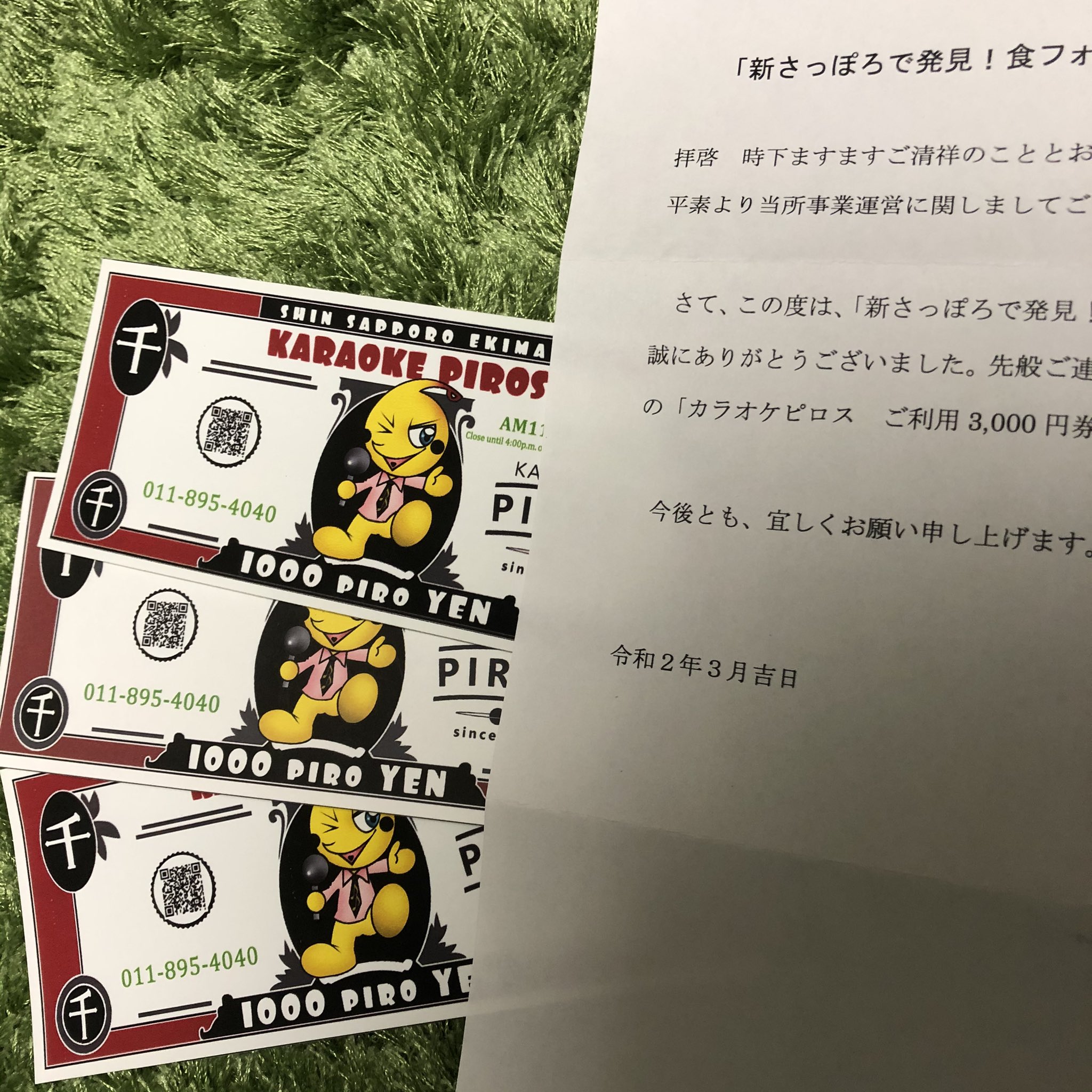 @shinsapporo_sp やったー!!!選んでいただきありがとうございますピロスのカラオケ券