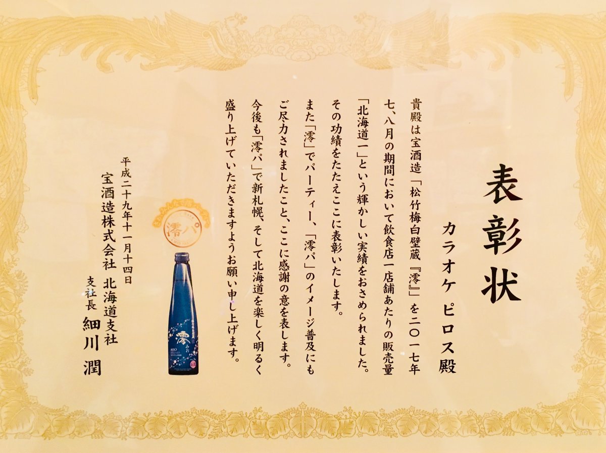 【日本一こぼれ話】宝酒造・澪の飲食店販売量で日本一になったことがあるピロス✨実は…その前年には北海道一位になってたッス🍾✨... [カラオケピロス【Twitter】] | カラオケピロス