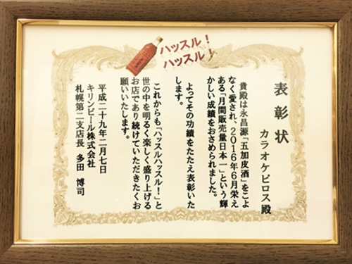 【日本一こぼれ話】宝酒造・澪の飲食店販売量で日本一になる前の2016年には永昌源・五加皮酒の販売量でピロスは日本一に輝いてる... [カラオケピロス【Twitter】] | カラオケピロス