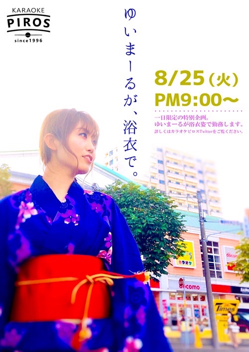 8/25(火)はゆかたまーる登場👘✨何が起きるとかではなくゆかたまーるがいまッス👘✨ぜひスケジュール帳に🗓夏の終わりを夏らしく... [カラオケピロス【Twitter】] | カラオケピロス