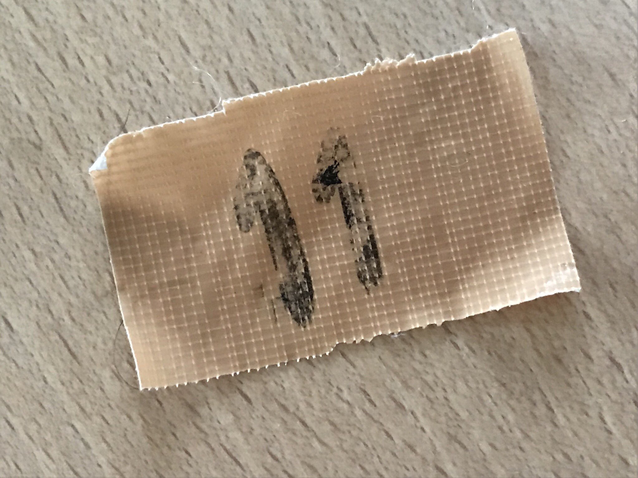 エントリーナンバーシール取るの忘れて洗濯したらしく部屋の隅っこに落っこちてるの今ごろ発見された11番