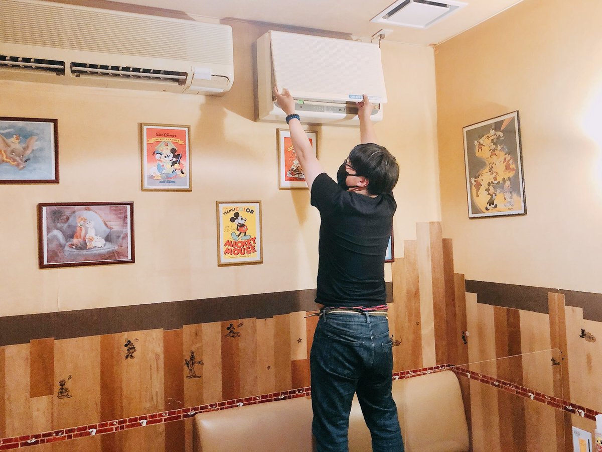 ピロザンギカーが頑張ってる頃カラオケピロスではがっちゃんが一台ずつエアコンを清掃してました。#カラオケピロス #新札幌 #新さ... [カラオケピロス【Twitter】] | カラオケピロス