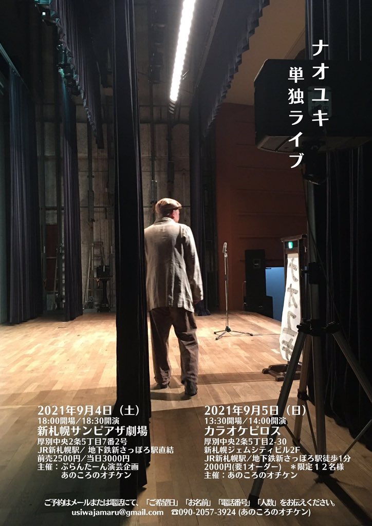 /#ナオユキ 単独ライブin 新札幌\9月4日(土)新札幌サンピアザ劇場18時開場/18時半開園前売2500円/当日3000円9月5日(..... [カラオケピロス【Twitter】] | カラオケピロス