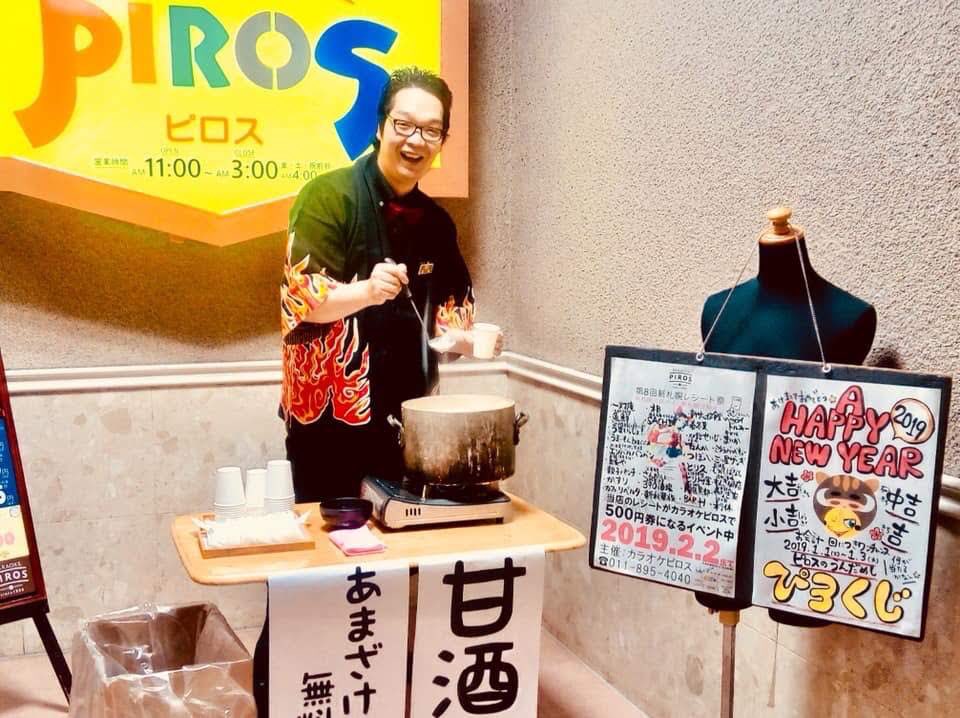 /🎍お正月のピロスは元日18時から営業します!\久しぶりにふるまい「甘酒」やりますよ!お正月の寒〜いビルの階段に温か〜... [カラオケピロス【Twitter】] | カラオケピロス