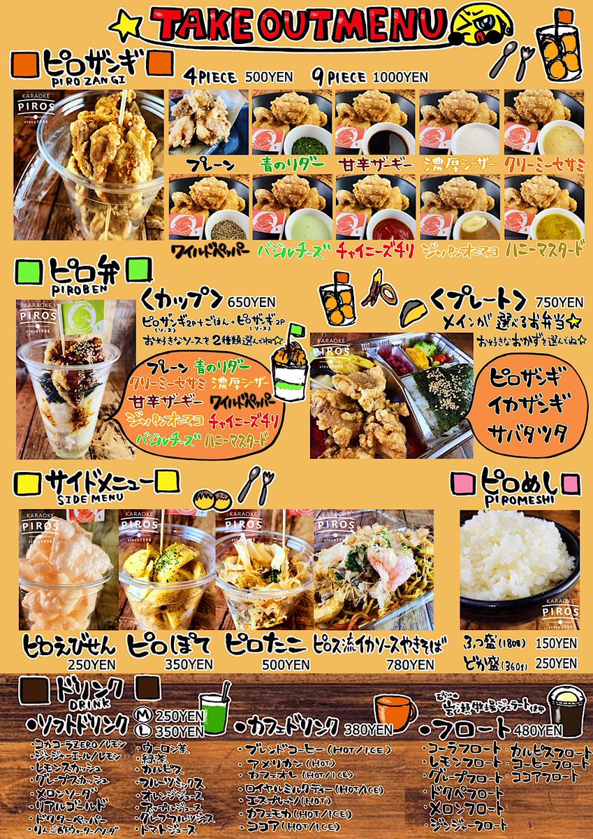 /土日はピロスでまったりごはん?おうちでピロス?\今日からスタートしたゆいまーる店長の日替わりピロザンギ🍗ぽてぱふぇも... [カラオケピロス【Twitter】] | カラオケピロス