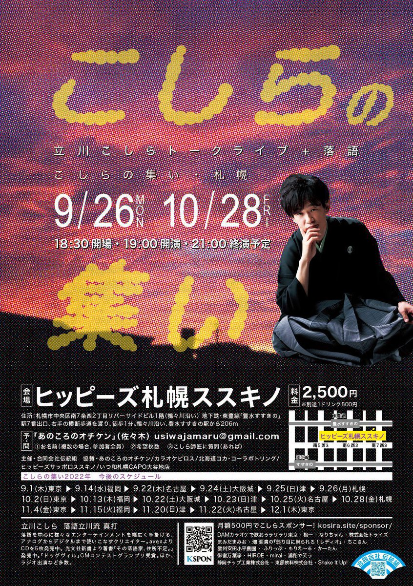 @anokoronootiken #立川こしら #柳家やなぎ #落語 #ヒッピーズ #カラオケピロス #札幌