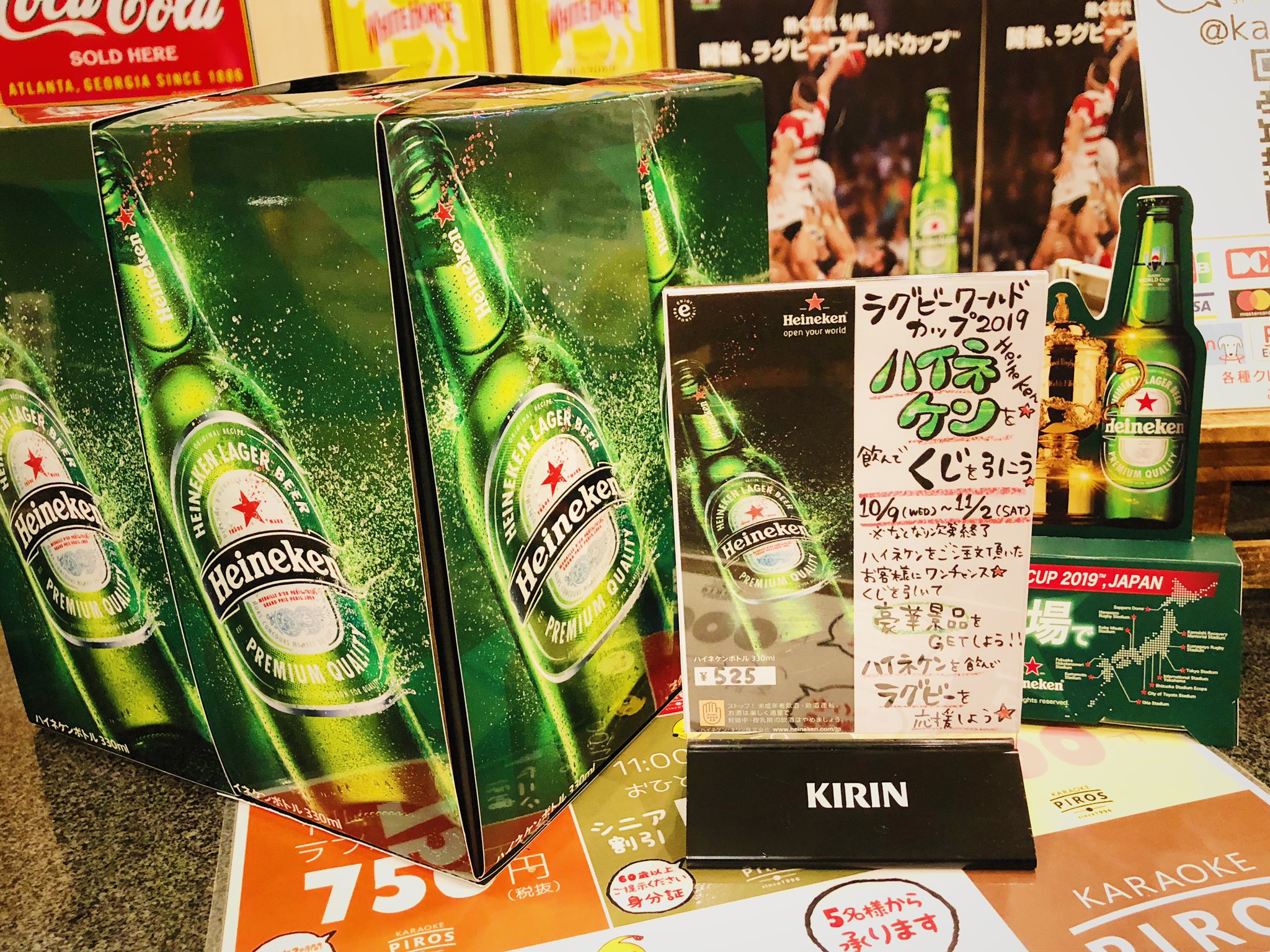 《ハイネケンクジスタート》 ハイネケンを飲んでラグビーワールドカップ2019を応援今ならハイネケンを一杯ご注文毎にワンチャンス! お会計時、ご注文数クジが引ける