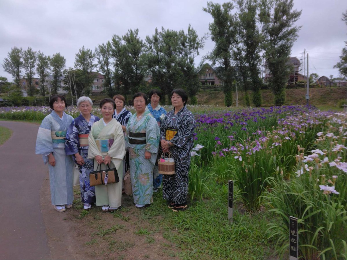 【岩見沢校で夏の集い開催しました】先月16日お気に入りの夏の装いで #いわみざわ公園 に集合💐園内を散策してから #あやめ公園 へ足を..... [小林豊子きもの学院【Twitter】] | 小林豊子きもの学院