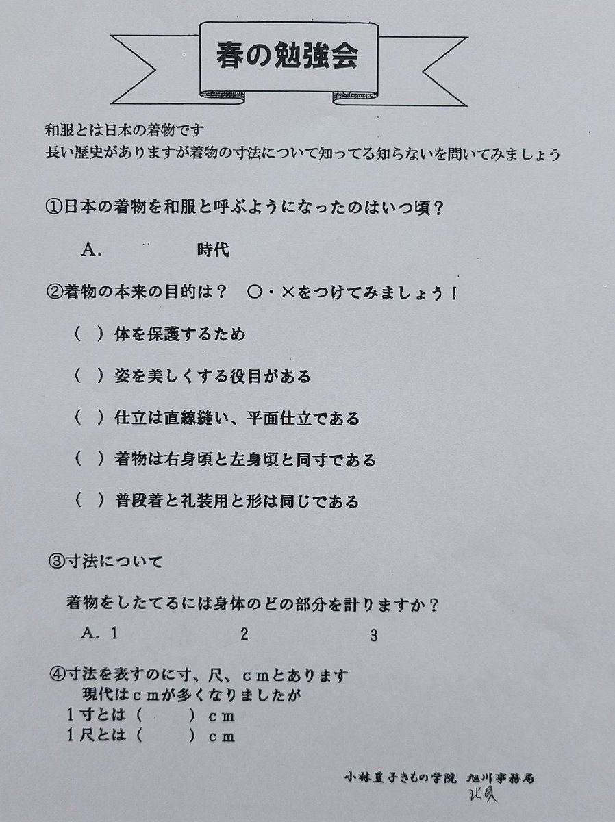 【2月開催🌸春の勉強会情報⑥ 旭川地区】「寸法」12(土) 旭川本校13(日) 北見市民会館会場は換気消毒を徹底し小人数でご案内します😌... [小林豊子きもの学院【Twitter】]