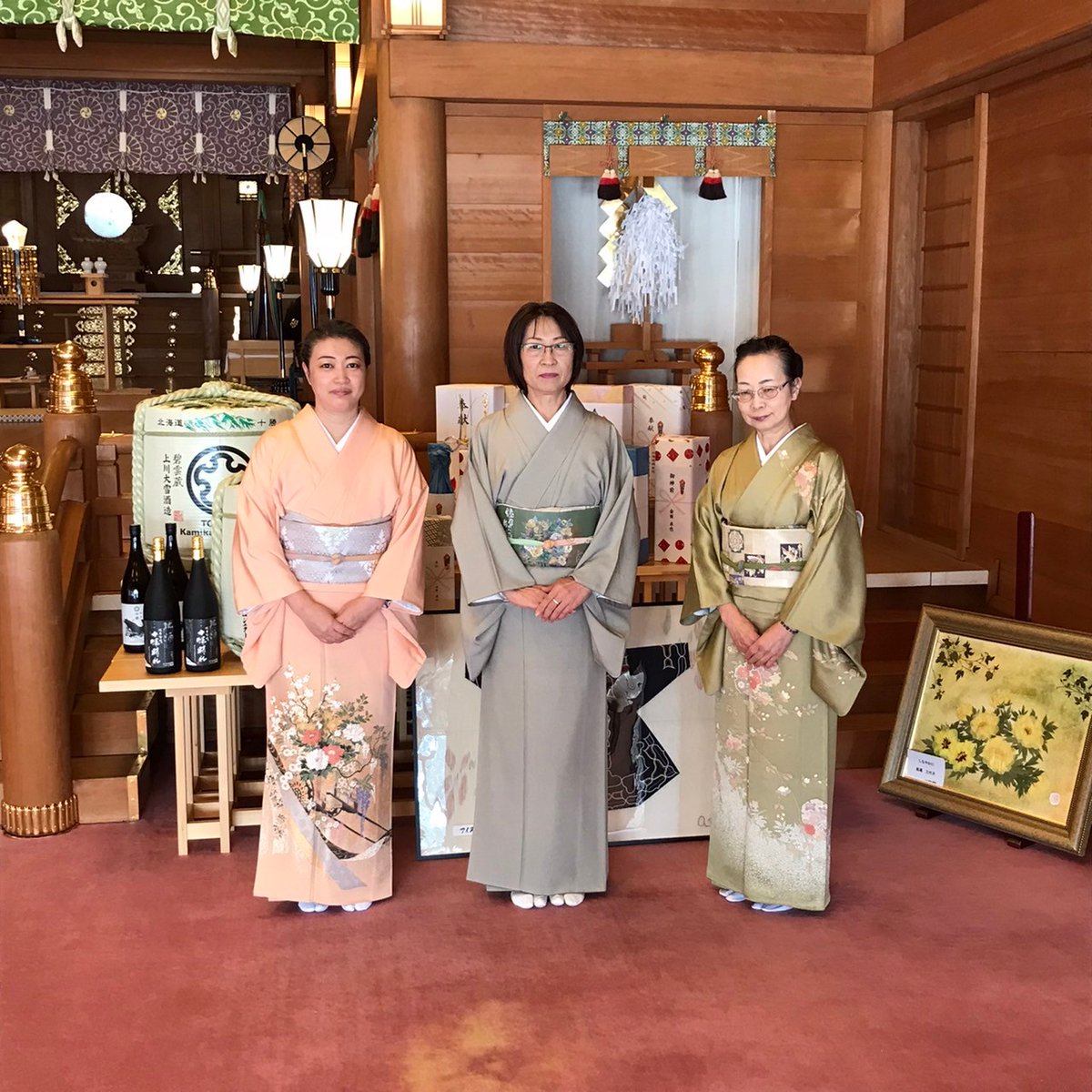 明日の事八日を前に😌昨日旭川校·帯広校で和裁を学ぶ皆さんと針供養を行いました💐きもの姿で気持ちをあらため神社へ💖固い布地を縫ってきた針の労をねぎらうと共に和裁の上達と健康を祈願しました✨