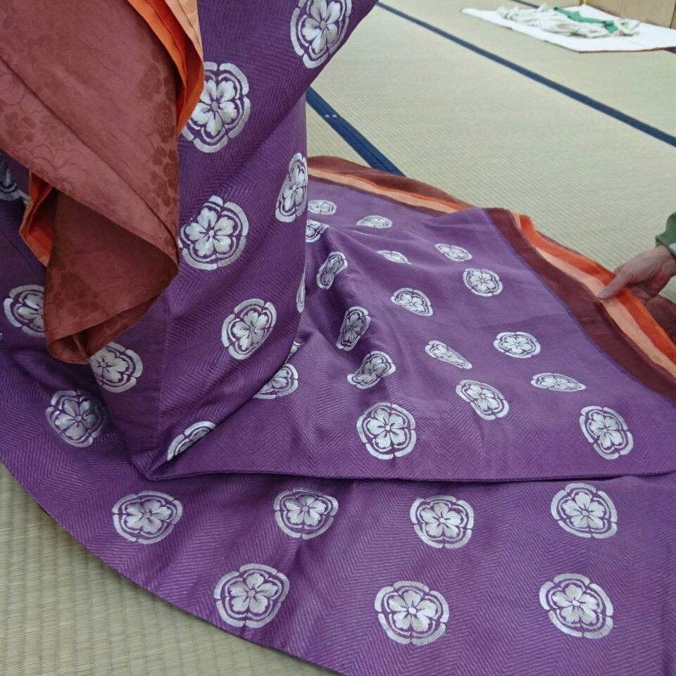 今日は岩見沢校で衣紋会💐時代衣裳の原点と言われる十二単の着装研修です👘7枚前後繰り返し行う袿の着装は縫い目や折り目の直線を意識し... [小林豊子きもの学院【Twitter】] | 小林豊子きもの学院
