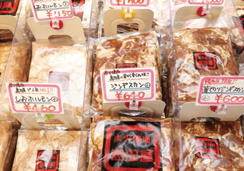 創業当時から変わらぬおいしさを提供している島田屋精肉店。 おススメは限定販売の「うすぎりジンギスカン」。 ステーキ肉や豚足など精肉店イチオシの商品の他、キムチやチャンジャなども扱っています。 通も納得の品ぞろえです。