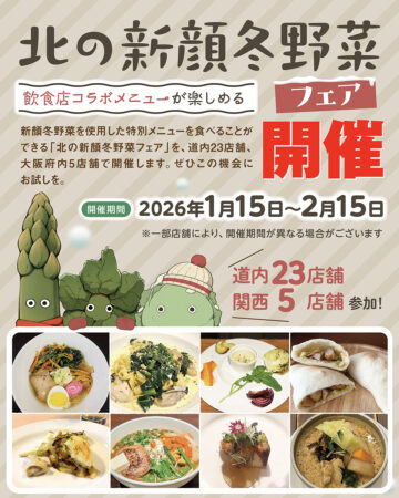 冬ならではの付加価値を持つ冬野菜(ちぢみほうれんそう、伏せ込みアスパラガス、雪の下キャベツなど)を使った特別メニューを提供する「北の新顔冬野菜フェア」を、1/15(木)~2/15(日)の1カ月間、道内と関西の飲食店で開催します。