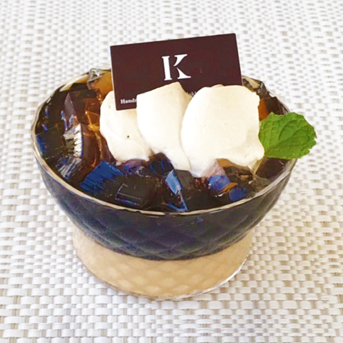自家焙煎にこだわった「斎藤珈琲」さんのコーヒー豆を使用した深い味わいが魅力「深煎りカフェゼリー」コーヒーババロアの上に、コ... [洋菓子きのとや【Twitter】] | 洋菓子きのとや