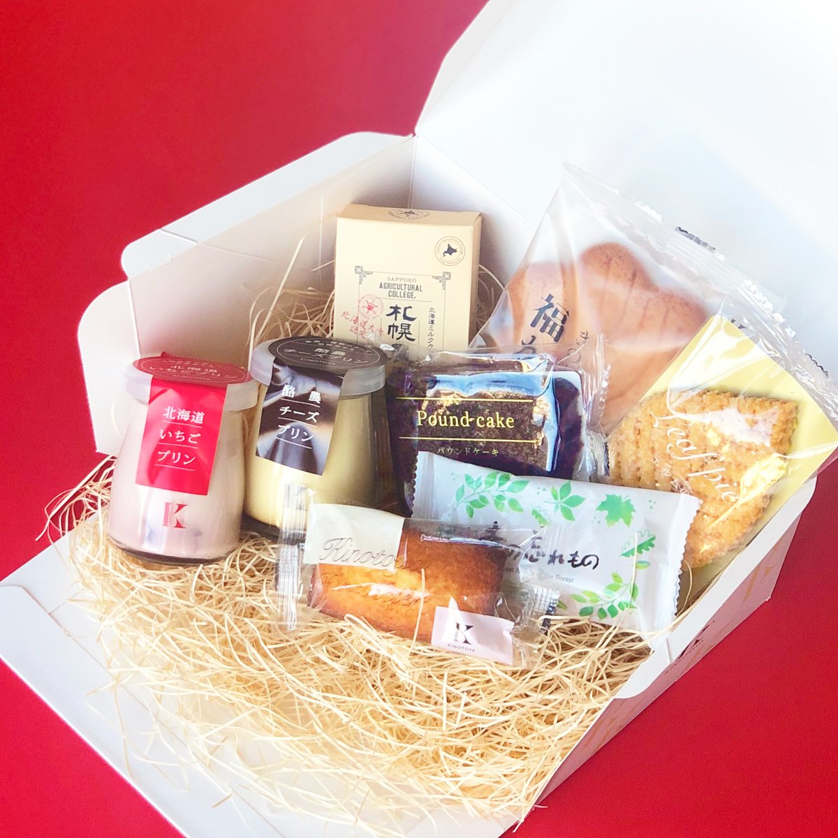 厳選素材を贅沢に使用したプリンや、人気の「札幌農学校」、「きのとやフィナンシェ」などの自慢のスイーツセット🎁