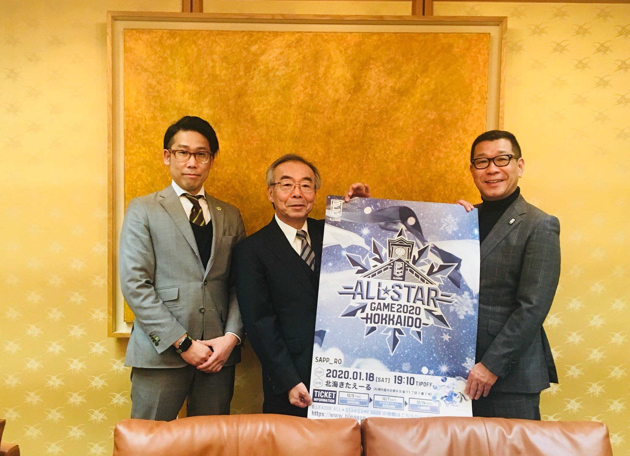 昨日#Bリーグ の#大河正明チェアマン、大会責任者の増田氏、#レバンガ北海道 CEOの横田が#株式会社北海道新聞社 様へ『B.LEAGUE ALL-STAR GAME 2020 IN HOKKAIDO』開催のご挨拶とPRに伺いましたご対応くださった広瀬代表取締役社長はじめ