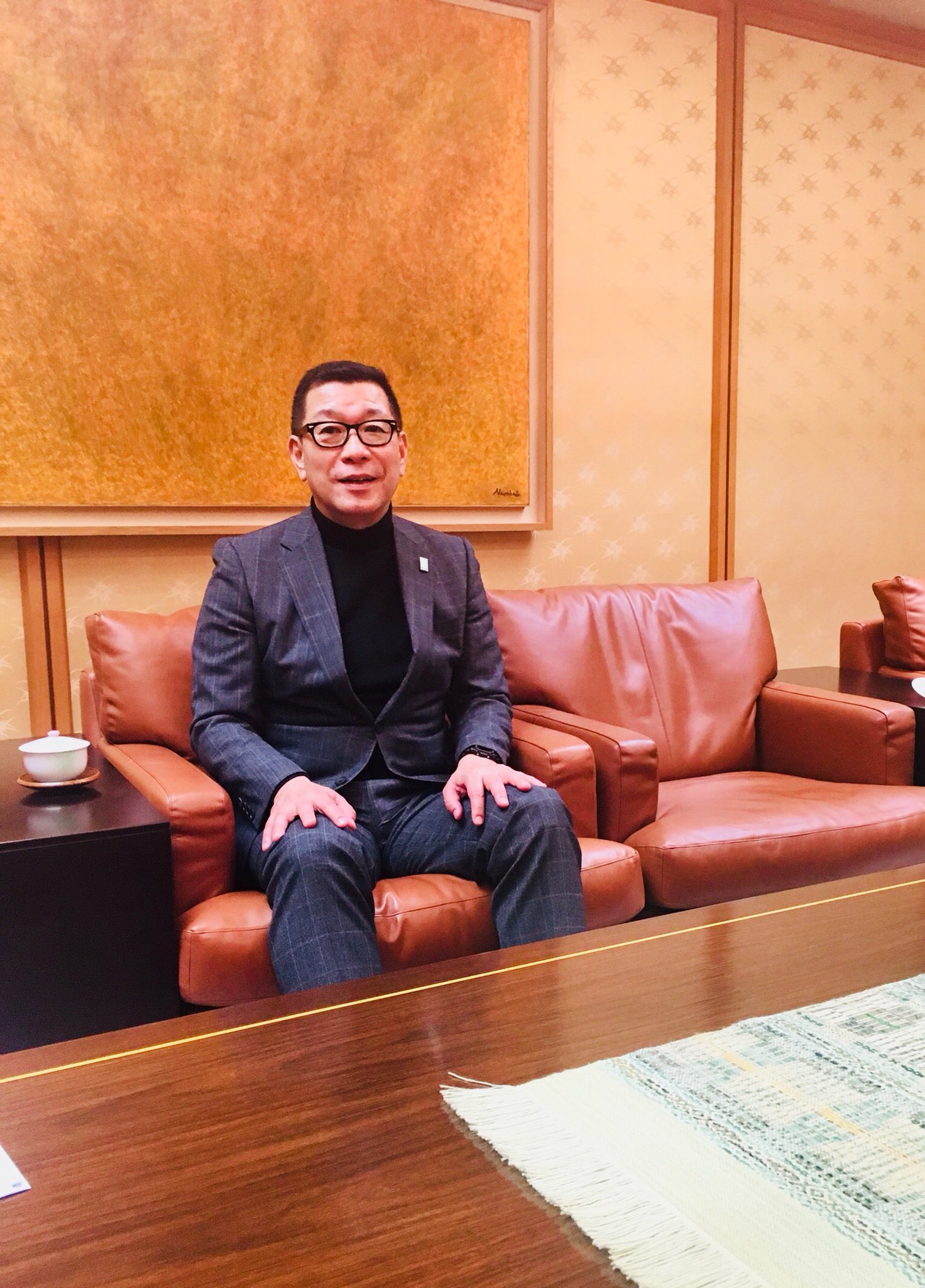 ご挨拶後は、大河チェアマンにレバンガ北海道ご担当記者さんから取材を受けていただきました![]()
