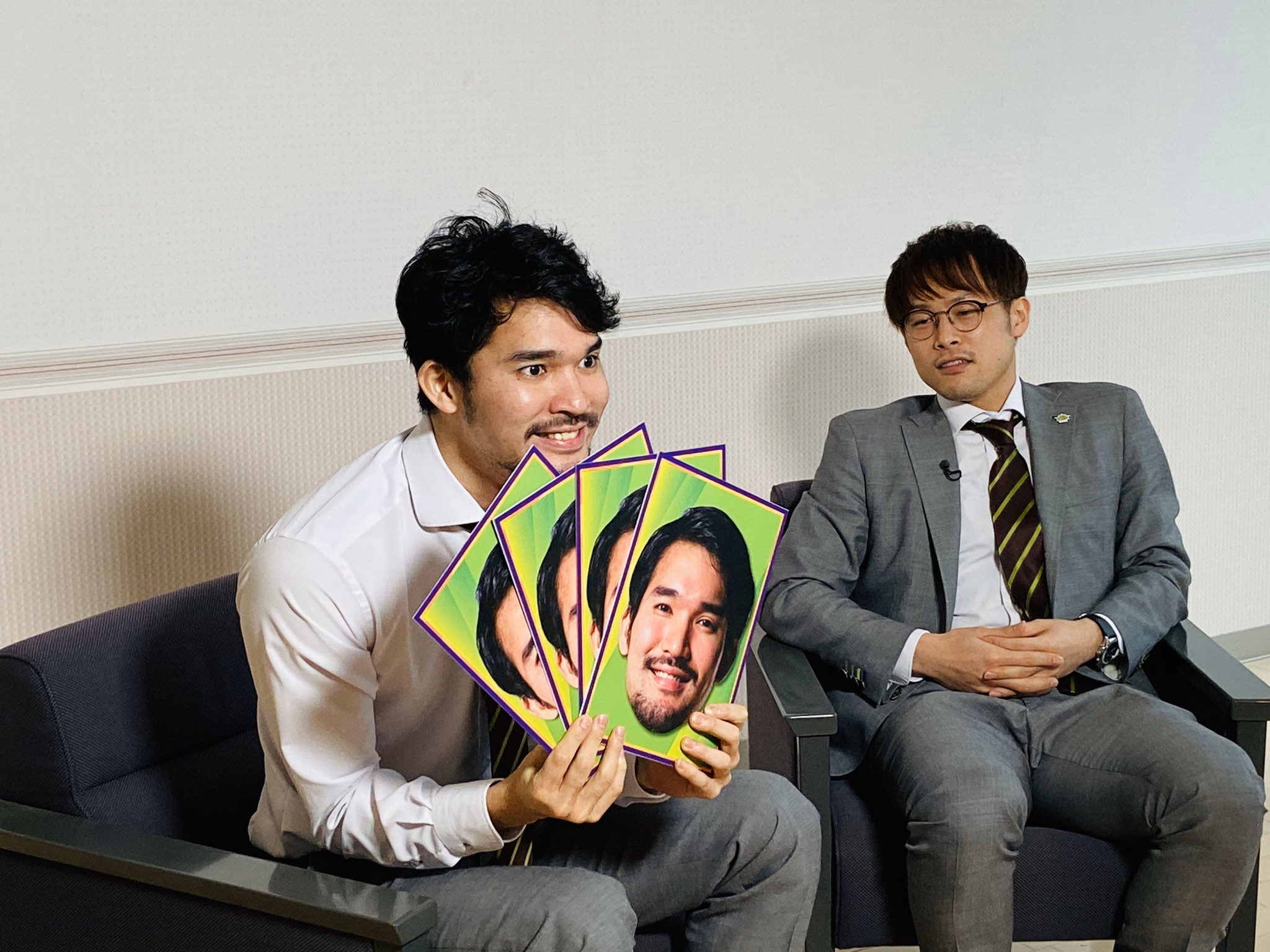 そしてなんと...!!今回の放送から全てのカードに #松島良豪 選手の顔写真入りとパワーアップ!!!!! 喜ぶ #松島選手 を横目に「え〜俺コレ引くのぉ〜」と言いながらも(笑)、スマートに引きスマートにトークを展開し、笑顔もでる #多嶋選手 の楽しみよう♪ ぜひお見逃しなく #HBC #レバンガ北海道 pic.twitter.com/eR1tmntQ4q