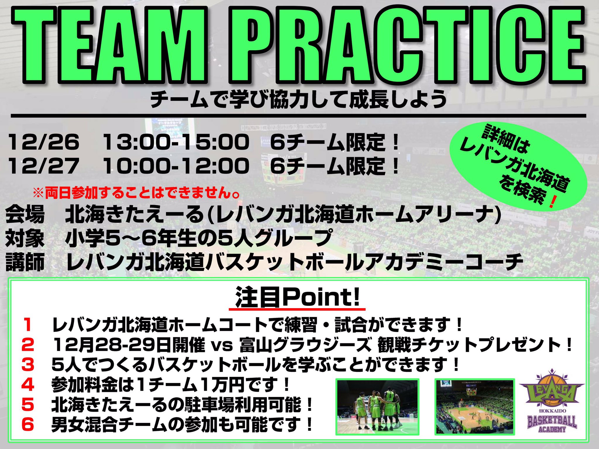 #レバンガ北海道 バスケットボールアカデミー「TEAM PRACTICE」を開催します![]()