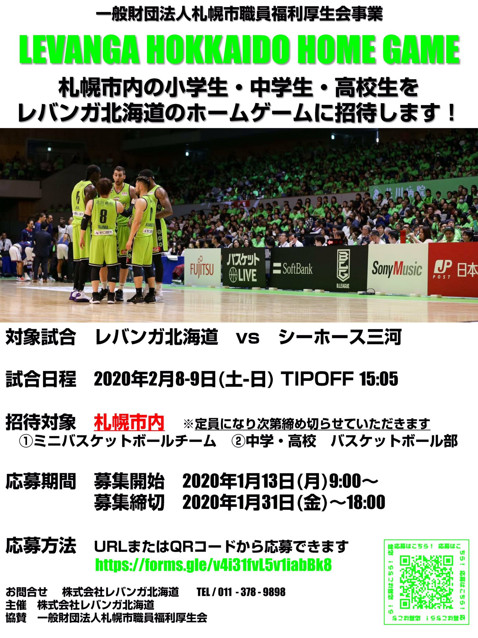 / 2/8(土)-9(日)シーホース三河戦 札幌市内の小・中学生と高校生 ご招待のお知らせ\ 詳細はこちは