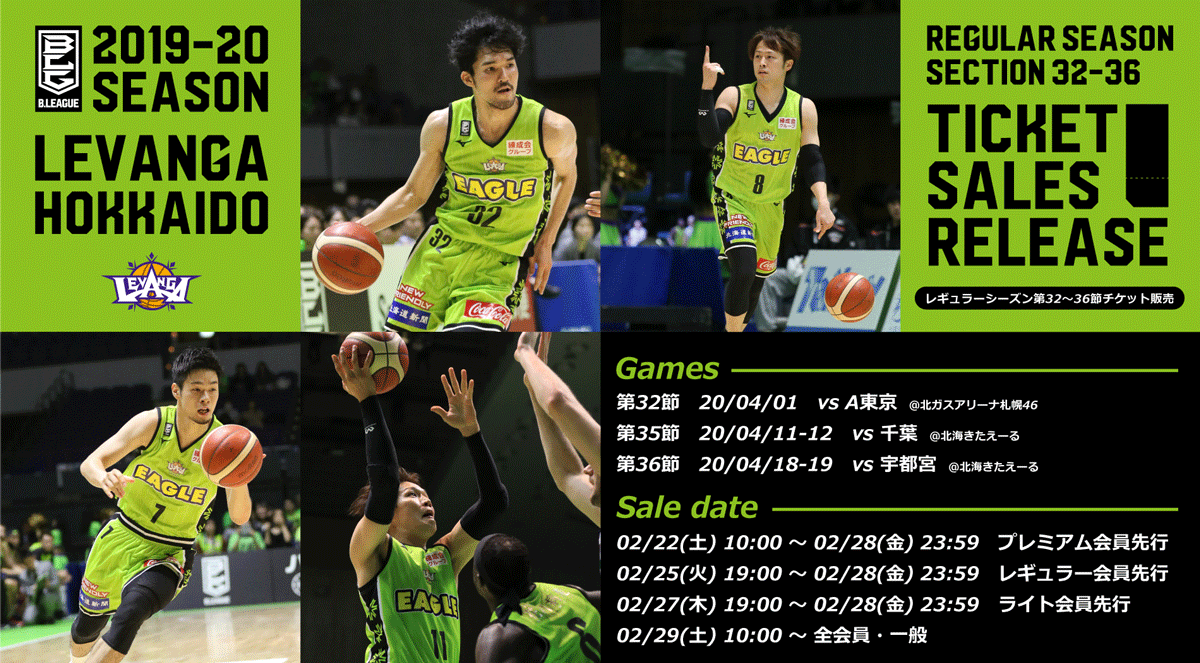 【レバンガ北海道 2019-20シーズン第9回チケット販売情報