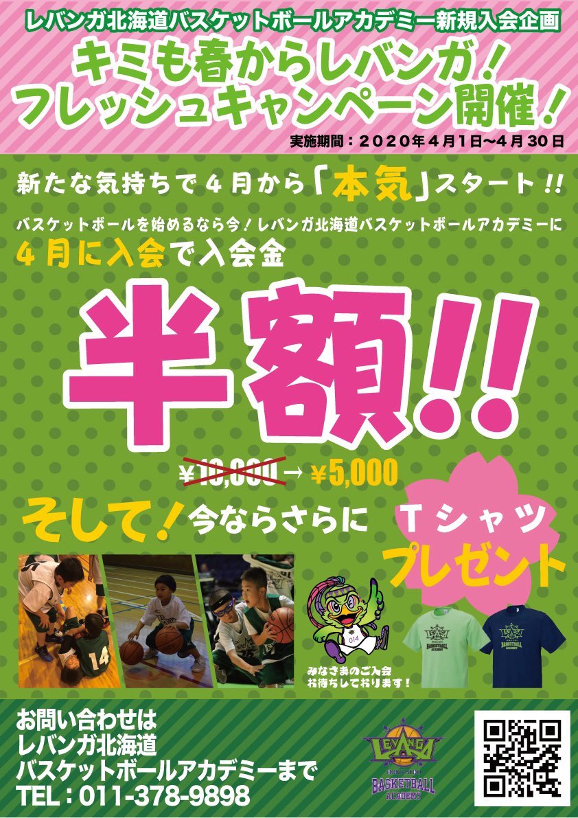 /#レバンガ北海道 アカデミー🏀フレッシュキャンペーンを開催🌸\💁♂️4月に入会で入会金が半額!💁♂️レバンガTシャツプレゼント... [レバンガ北海道【Twitter】] | レバンガ北海道