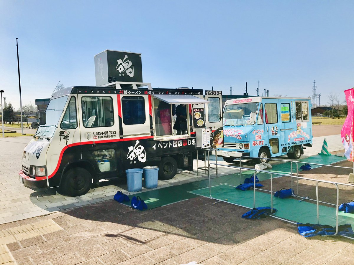 🤤飲食出店情報@釧路🤤入場口前のキッチンカーは…🍜麺道昇憲醤油塩(チャーシューとろとろ✨)🍦ミルキークラウンミルキーサン... [レバンガ北海道【Twitter】]
