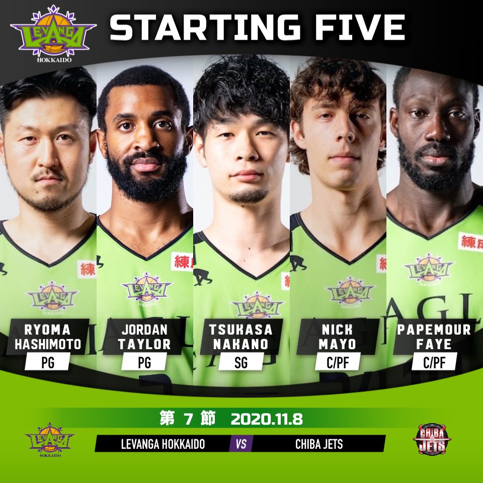 【Today's Starting5】0 #橋本竜馬2 #ジョーダン・テイラー7 #中野司10 #ファイパプ月瑠24 #ニック・メイヨ #B... [レバンガ北海道【Twitter】]