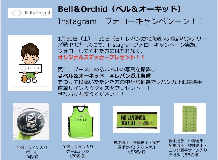 オフィシャルスポンサー #竹山 様が運営するECサイト #ベルアンドオーキッド 様が1月30日31日にInstagramフォローキャンペーン... [レバンガ北海道【Twitter】] | レバンガ北海道