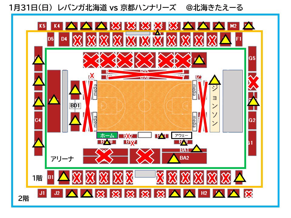 ⚠️1/31(日)京都戦のチケットが残りわずかとなっております⚠️(×…完売、△…10席以下)まだお求めいただいてない方はお急ぎください🎫... [レバンガ北海道【Twitter】] | レバンガ北海道