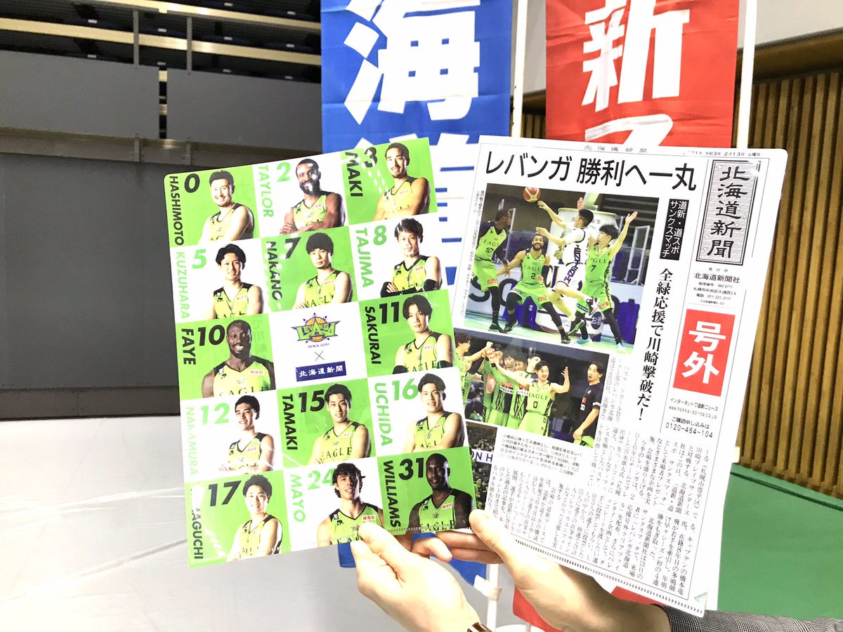 2/13(土)『#北海道新聞 #道新スポーツ サンクスマッチ』📰✨本日入場口にて、先着1,600名様にクリアファイルを配布します🤗会場内... [レバンガ北海道【Twitter】] | レバンガ北海道