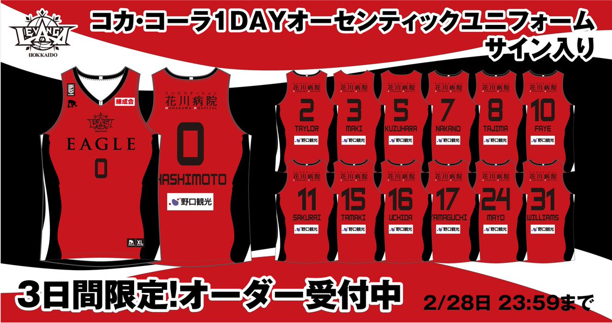 /#コカ・コーラ 様プレゼンツ1Dayサイン入りオーセンティックユニフォーム オーダー受付スタート!\▼詳細はこちら💁♂️https:.... [レバンガ北海道【Twitter】]