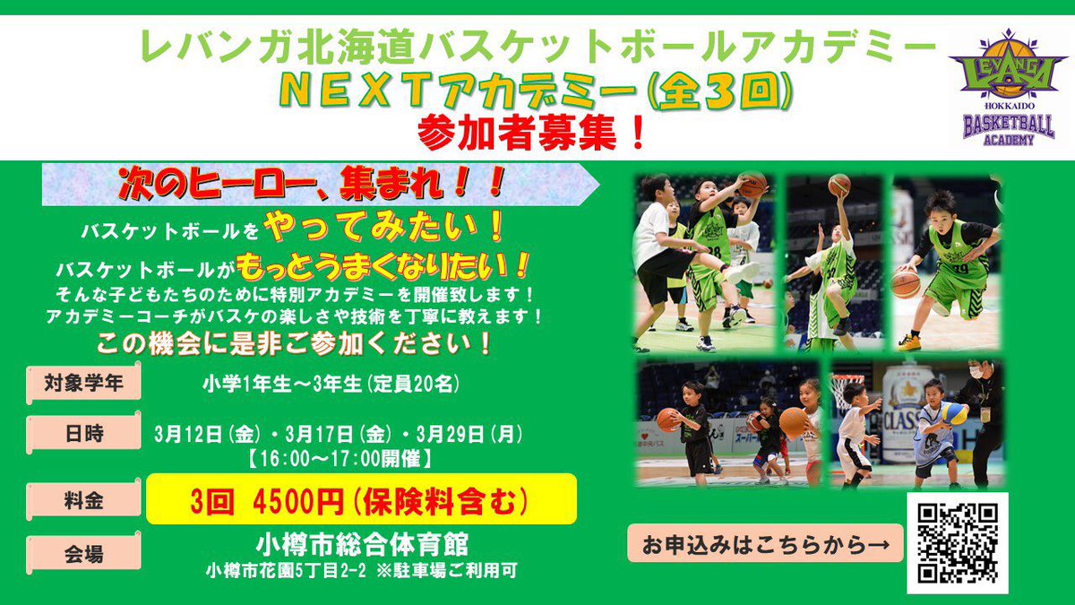 小樽校【PRE SCHOOL】【NEXTアカデミー】生徒募集中!小樽市での開催になります🏀たくさんのお申し込みをお待ちしております!詳..... [レバンガ北海道【Twitter】] | レバンガ北海道