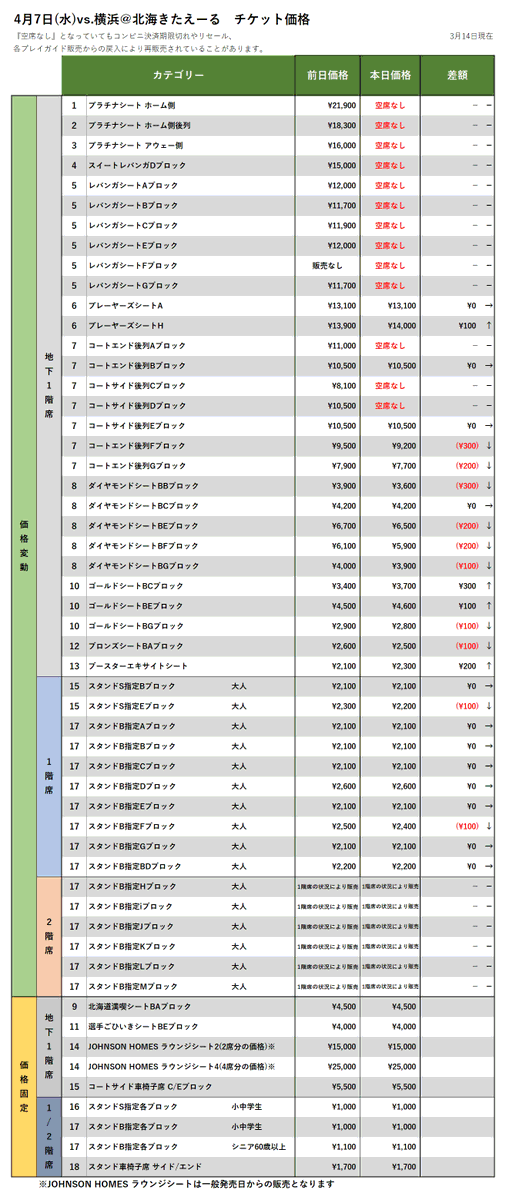 【チケット情報】3/31vs.新潟、4/7vs.横浜の3/14時点価格変動(現在、FC会員・一般販売中!)▽購入はこちらから▽https:/... [レバンガ北海道【Twitter】]