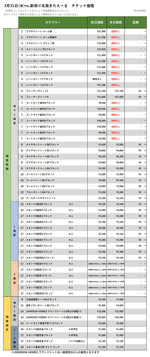 【チケット情報】3/31vs.新潟、4/7vs.横浜の3/18時点価格変動(現在、FC会員・一般販売中!)▽購入はこちらから▽https:/... [レバンガ北海道【Twitter】] | レバンガ北海道