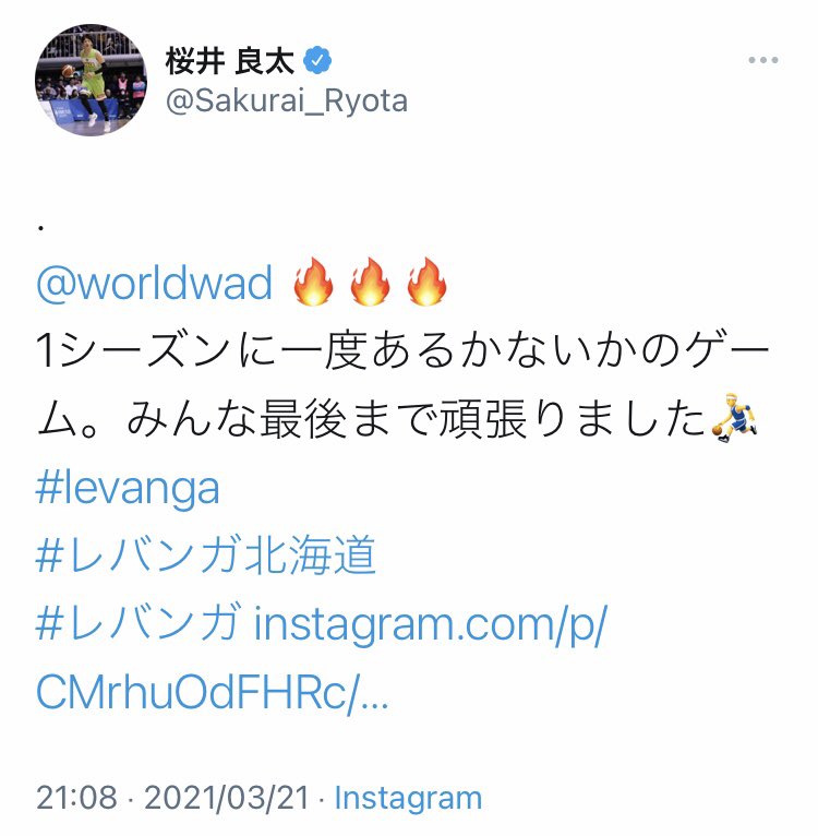 (桜井選手のジャワ兄とチームを称えるツイートもぐっとくるのでそっとご紹介しますね…)それぞれのアカウントはこちらでございます👇👀... [レバンガ北海道【Twitter】] | レバンガ北海道