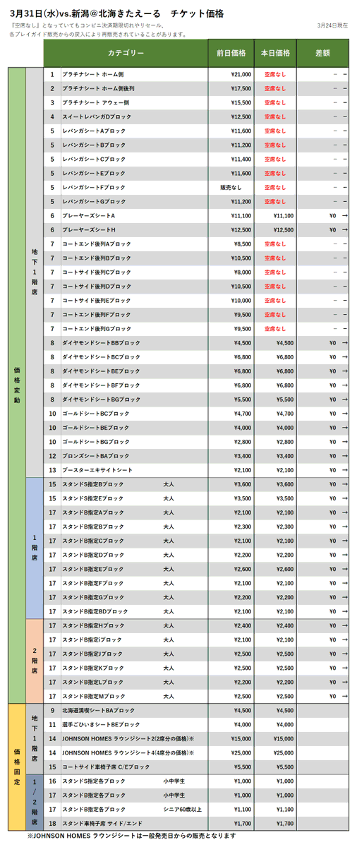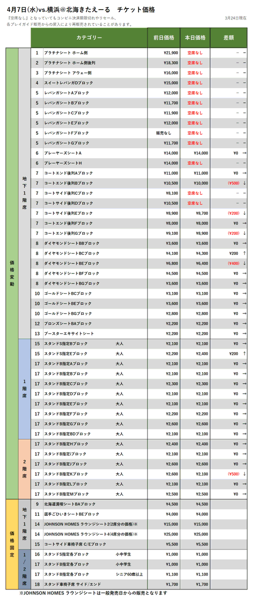 【チケット情報】3/31vs.新潟、4/7vs.横浜の3/24時点価格変動(現在、FC会員・一般販売中!)▽購入はこちらから▽https:/... [レバンガ北海道【Twitter】]