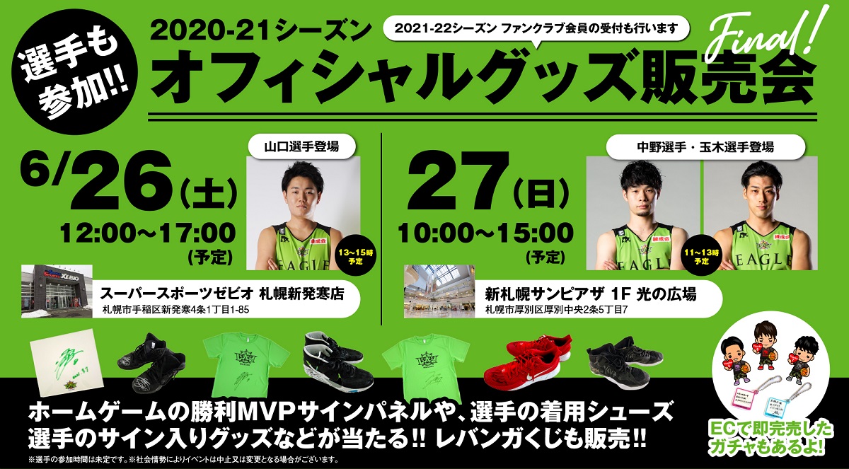 / 2020-21 SEASON オフィシャルグッズ販売会 🏀開催のお知らせ 📢✨\ 🗓️6/26(土) 12-17時(予定) 📍ス... [レバンガ北海道【Twitter】]
