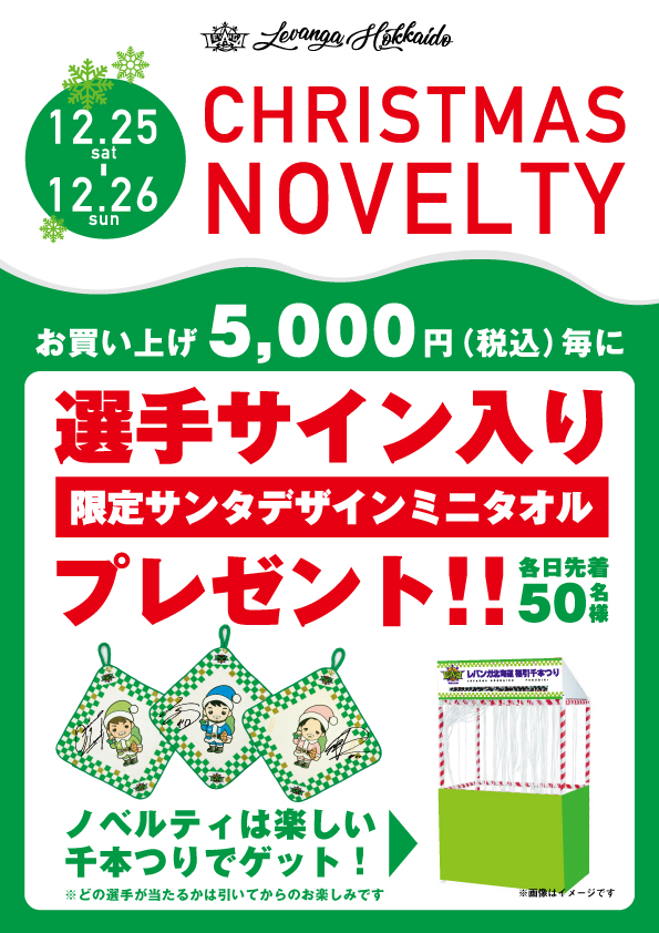 クリスマスノベルティプレゼント実施🎅12/25(土)ー26(日)のホームゲーム会場にてグッズ5,000円お買い上げ毎に一枚、千本つり抽選券... [レバンガ北海道【Twitter】]