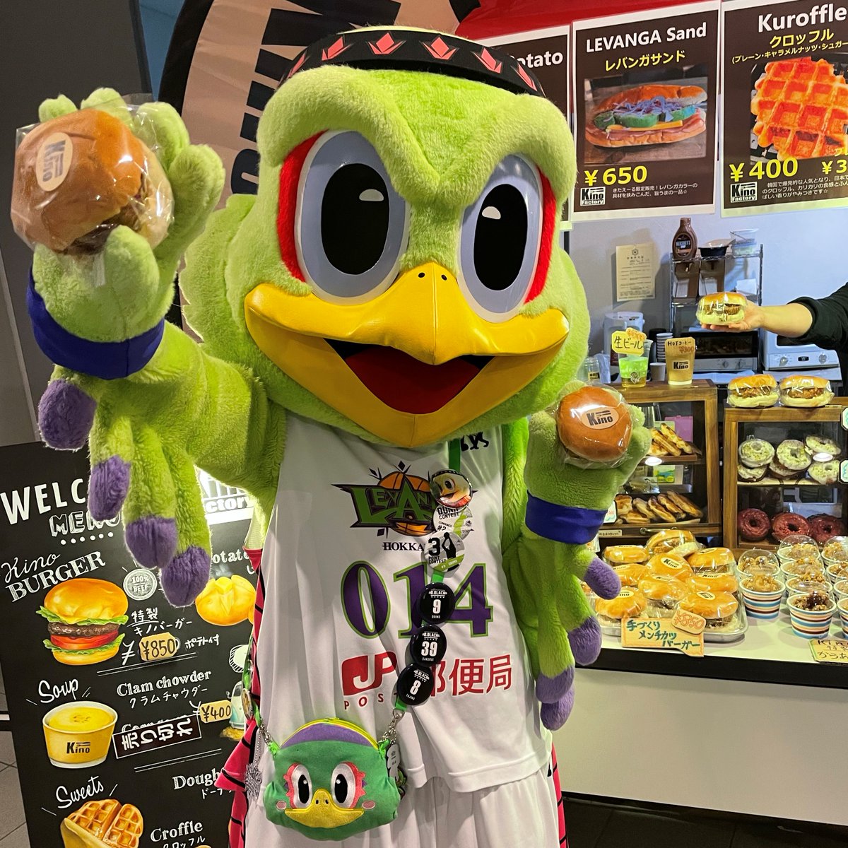今日のお昼は…何を食べようかな😋全緑応援のエネルギーチャージ🔥🔥🔥🍴キノファクトリー・手作りメンチカツバーガー🍔 ¥850- ?... [レバンガ北海道【Twitter】] | レバンガ北海道
