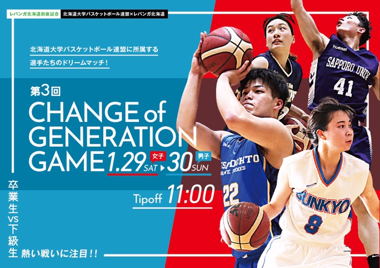 【1/29-30vs川崎】前座試合第3回CHANGE of GENERATION GAME#バスケットLIVE でご視聴できます👀📡1/... [レバンガ北海道【Twitter】]