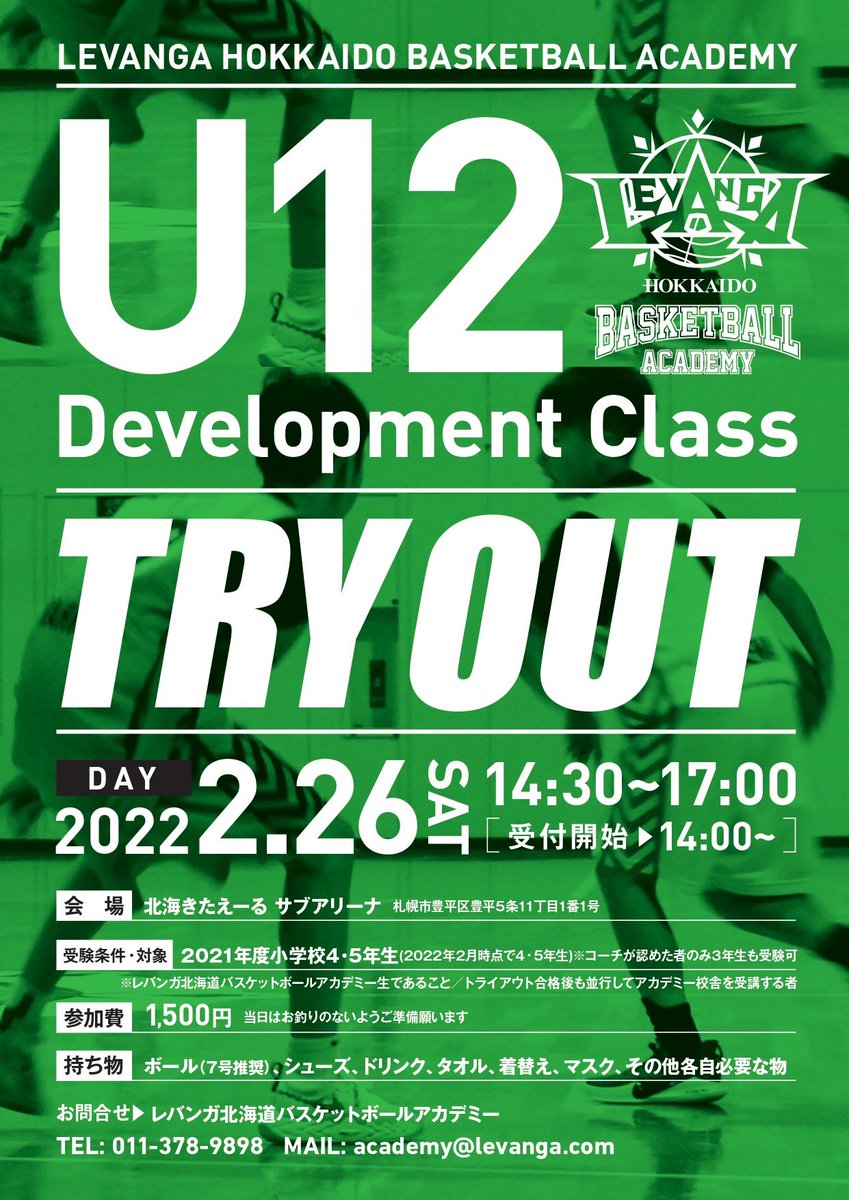 #レバンガ北海道バスケットボールアカデミー からのお知らせ2022年度 #U12DevelopmentClass の #トライアウト 申し込... [レバンガ北海道【Twitter】] | レバンガ北海道